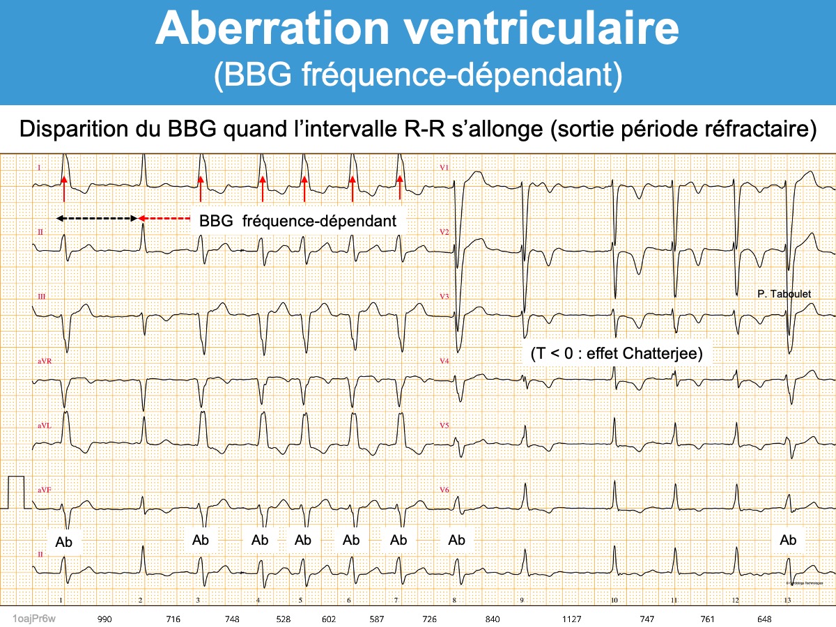 Anglais : aberrancy (aberration or aberrant intraventricular conduction)