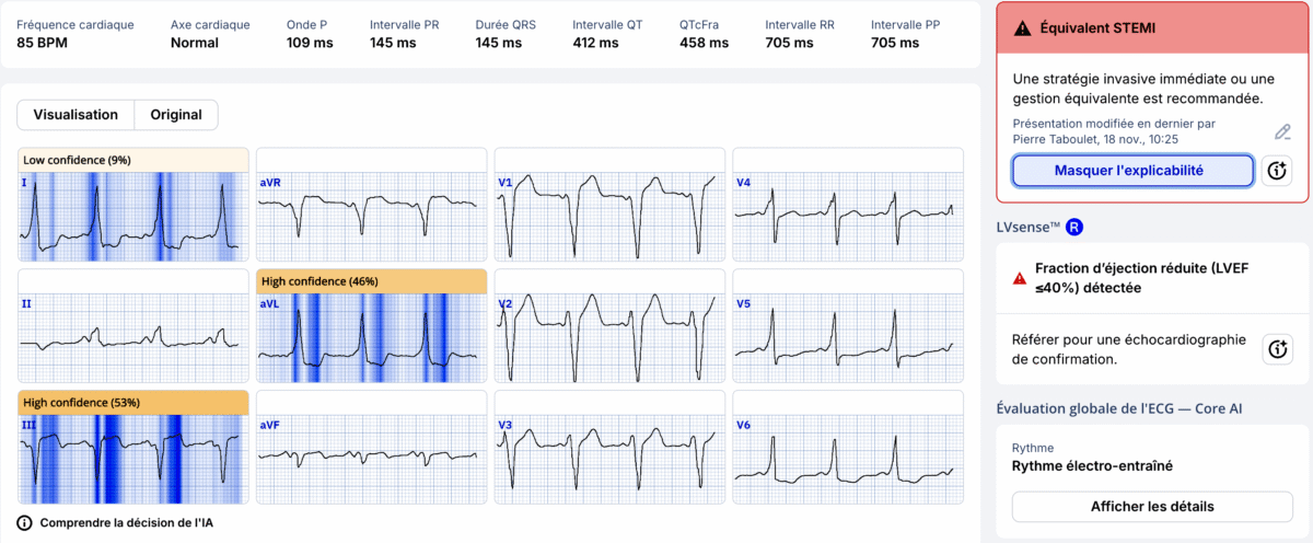 L’interprétation de l’ECG à la recherche des signes d’ischémie ou d’occlusion coronaire est difficile en cas de préexcitation ventriculaire, même pour les experts, car une préexcitation modifie à la fois la dépolarisation et la repolarisation et peut simuler ou masquer un infarctus aigu du myocarde [1].