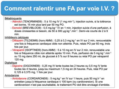 - ralentir la cadence ventriculaire d’une fibrillation atriale, d’un flutter ou d’une tachycardie atriale focale ;