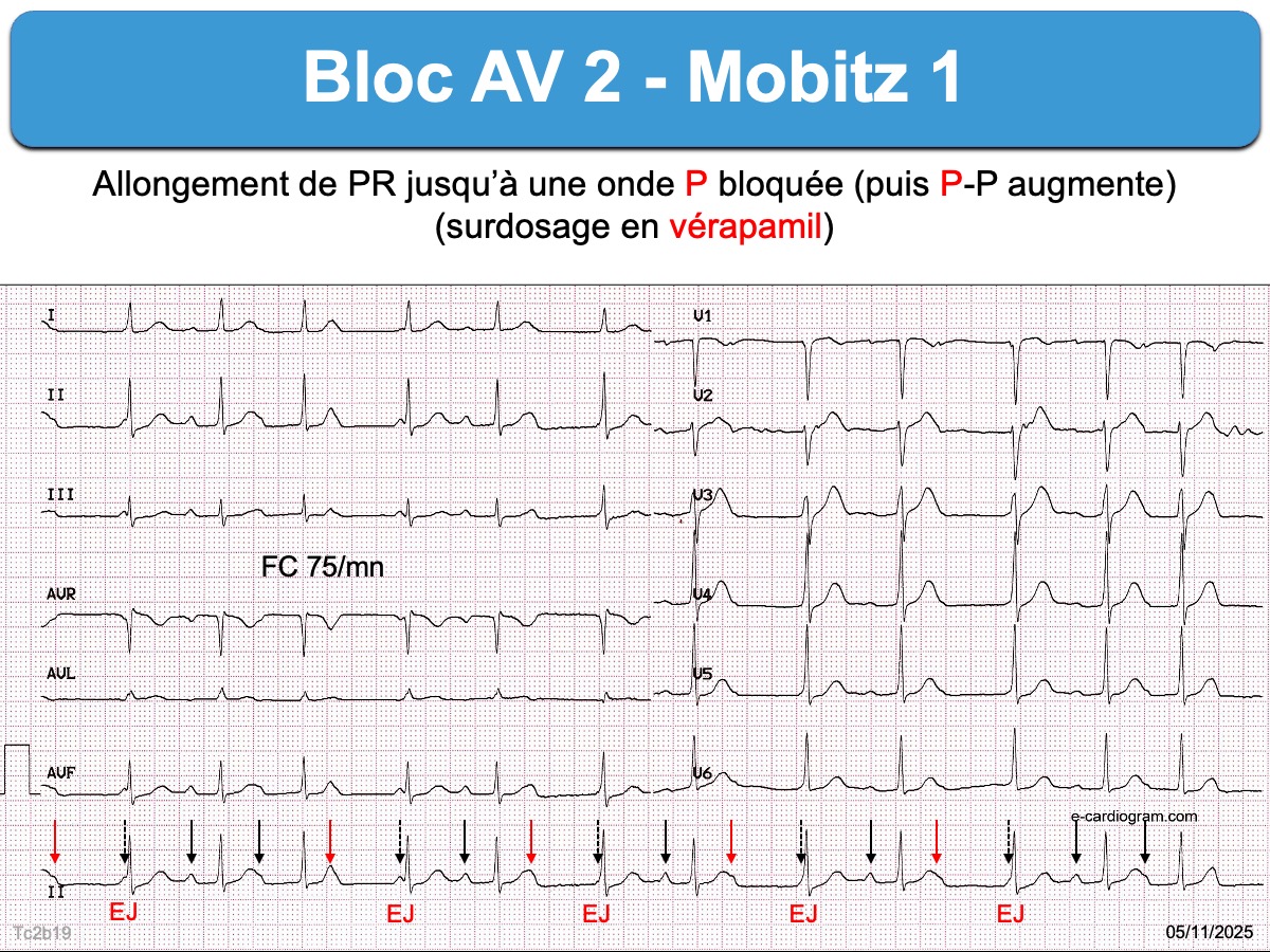 Synonyme : bloc AV type Wenckebach ou Mobitz 1