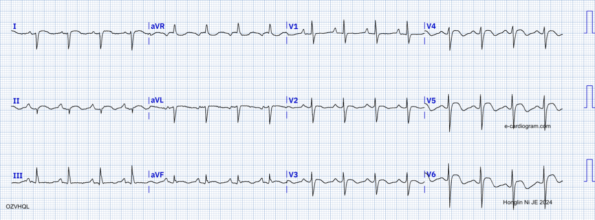- La précocité de l’activation antérieure gauche et les troubles de repolarisation consécutifs aux modifications de dépolarisation peuvent masquer dans le territoire inférieur une onde Q de nécrose et/ou une onde T négative d’ischémie sous-épicardique. Ce diagnostic peut être assuré par la comparaison du tracé en période ischémique avec un tracé antérieur ou par la vectocardiographie.