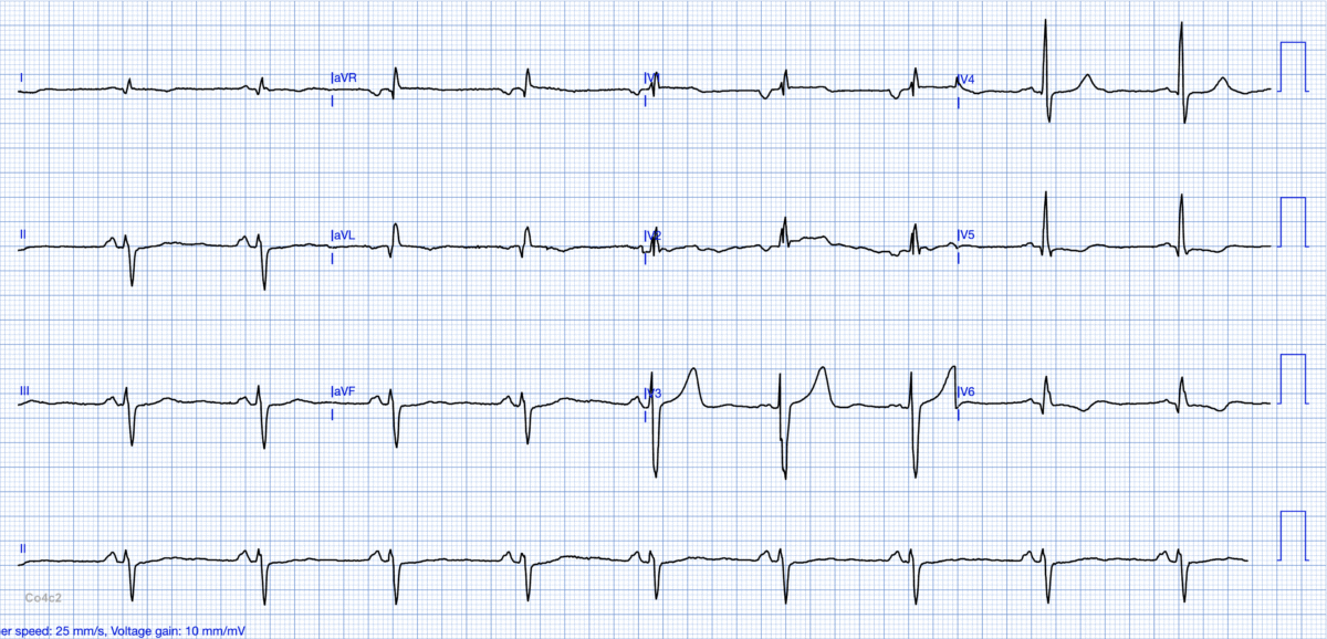 La fragmentation des QRS peut témoigner d’une altération segmentaire dans l’activation électrique des ventricules (cf. Bloc focal). Les étiologies sont extrêmement variées et incluent l’ischémie coronaire (SCA, infarctus, séquelle de nécrose, takotsubo), l’inflammation (Ex. Myocardite), la fibrose (cf. Hypertrophie ventriculaire, cardiomyopathie, cardiopathie congénitale) et la surcharge myocardique (ex. Amylose, sarcoïdose, hémochromatose…), contusion du parenchyme ou tumeur intramyocardique.