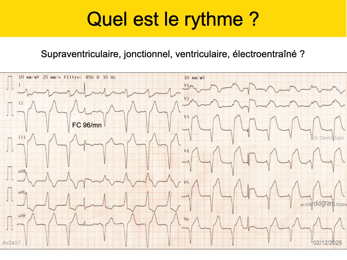 Variante normale de repolarisation de type masculine caractérisée par un sus-décalage de ST ascendant et des ondes T amples, prédominant dans les dérivations précordiales droites (V2-V3) [1].