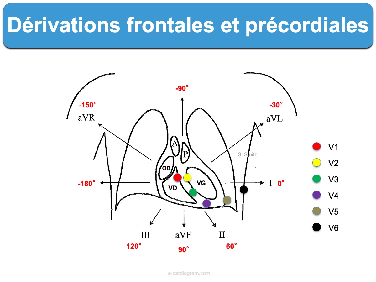 - V5 : même horizontale que V4, ligne axillaire antérieure.