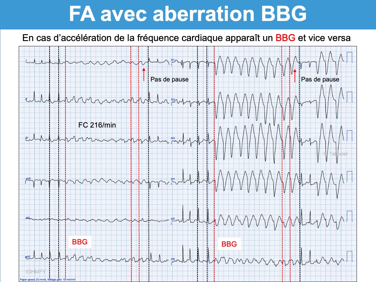On peut ajouter que les aberrations disparaissent en cas de ralentissement de la cadence ventriculaire.