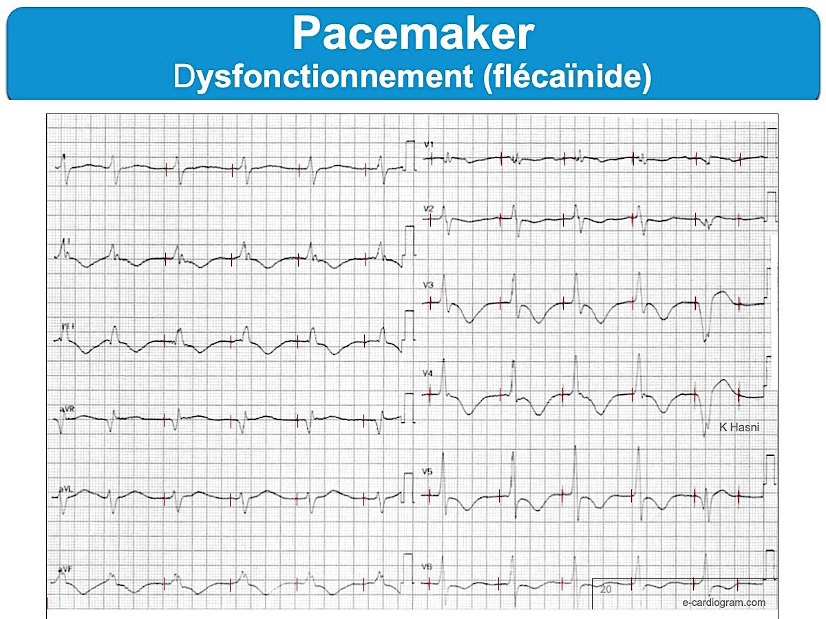 En cas de pacemaker, l’usage du flécaïnide peut augmenter le seuil de simulation et entrainer un dysfonctionnement du pacemaker.