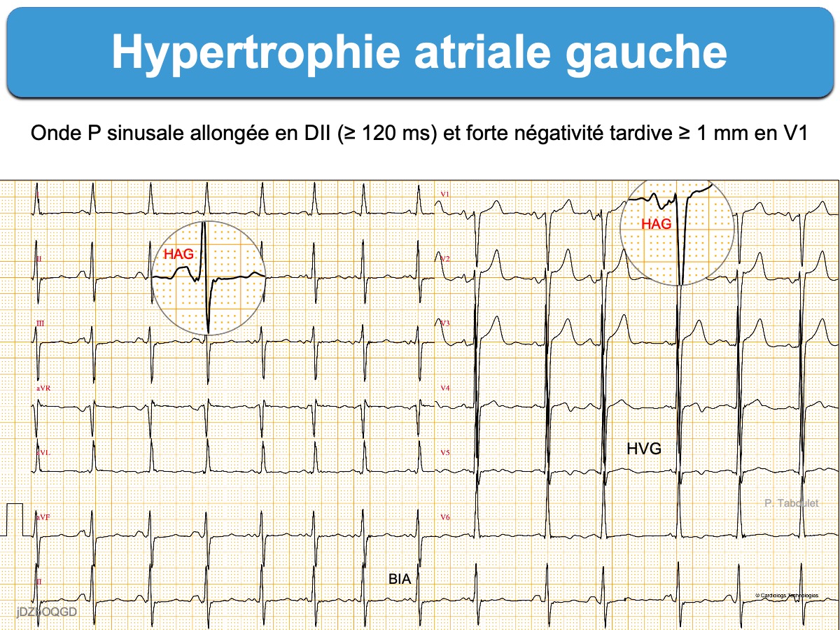 - La sensibilité de l’ECG pour le diagnostic d’une HAG est mauvaise, comparée aux données de l’échocardiographie ou de l’IRM. Néanmoins, l’existence d’une HAG électrique au côté d’une anomalie des complexes QRS augmente la probabilité de cardiopathie aiguë ou chronique avec hypertrophie ventriculaire gauche.