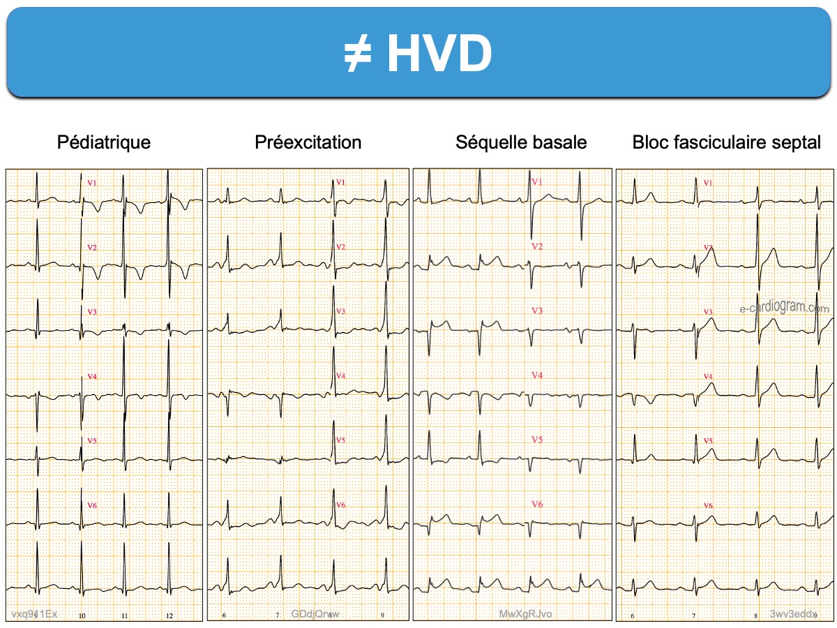 - HVD chez le sportif. La spécificité des indices d’HVD reposant sur l’amplitude des QRS est mauvaise chez le sportif chez qui l’hypertrophie VD électrique correspond à une forme d’adaptation à l’effort [5]. Lire ici