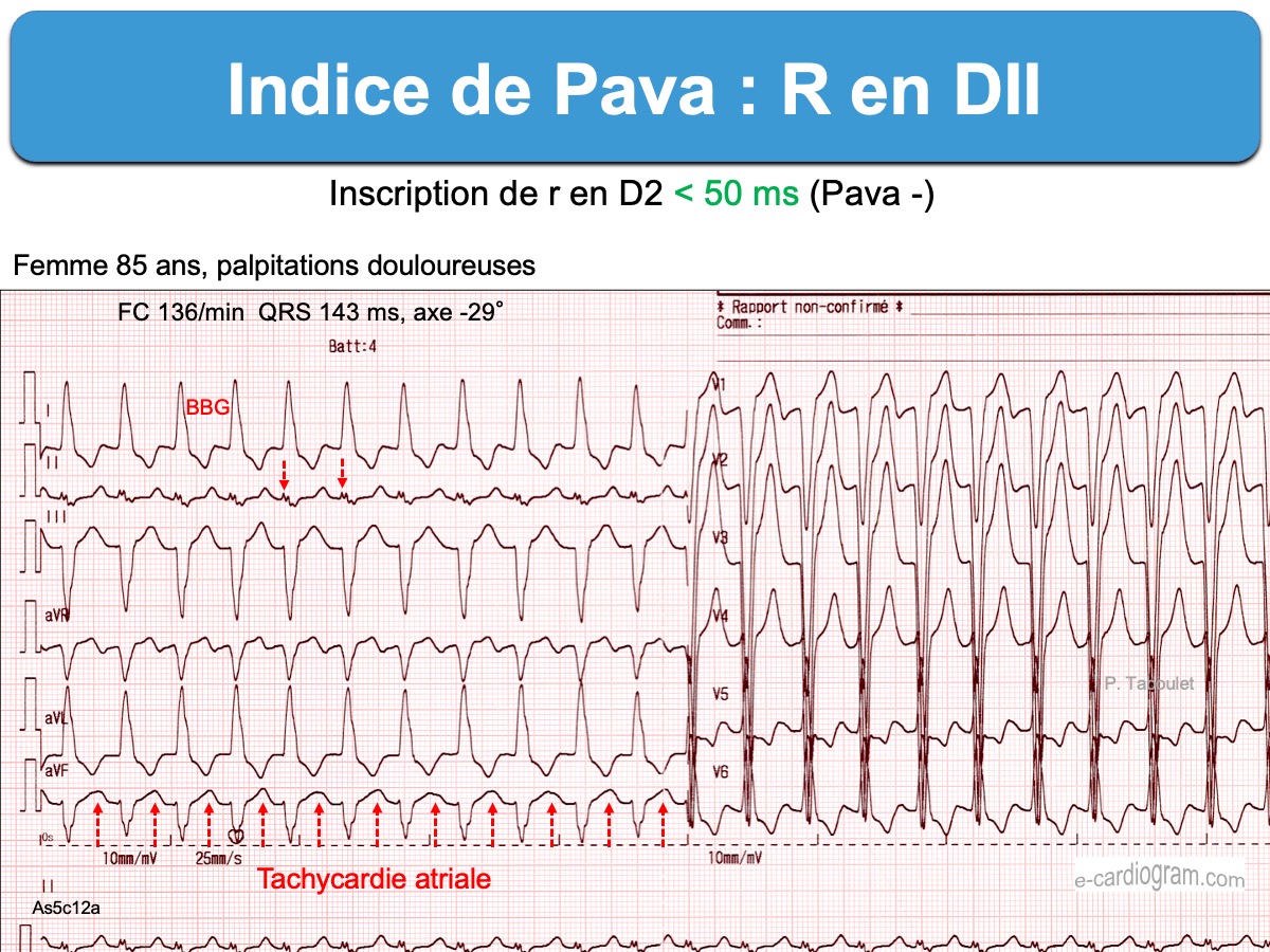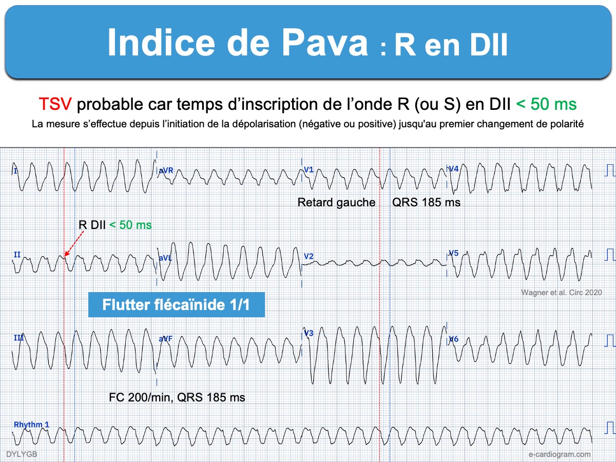 - Dans le doute (QRS peu volté en DII, début de la déflexion initiale mal visible, QRS très larges), il ne faut pas utiliser cet indice.