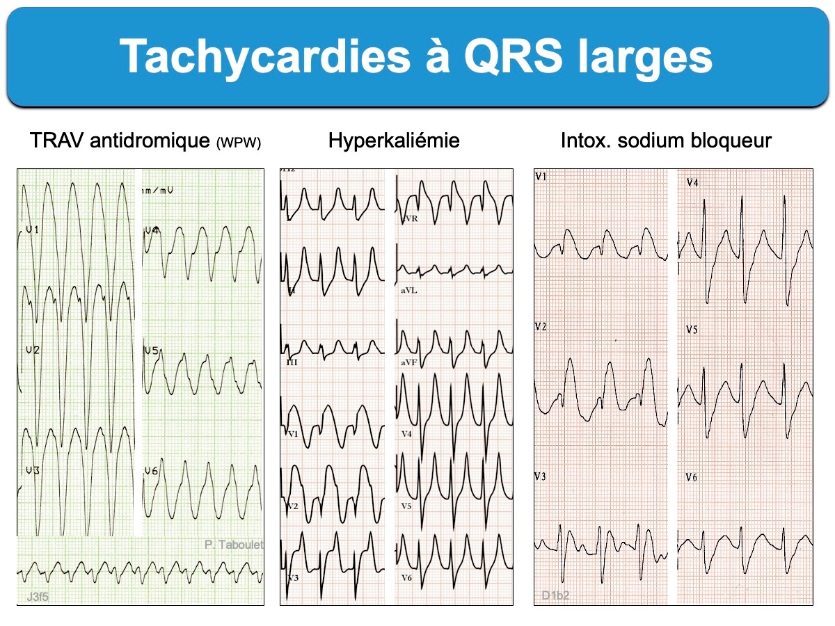 Tachycardie-a-QRS-larges-3-ex-Hyperkaliemie-Tricycliques-D1b2-et-TRAV-antidromique-J3f5-ECG-taboulet