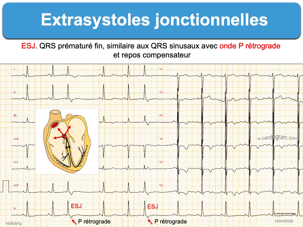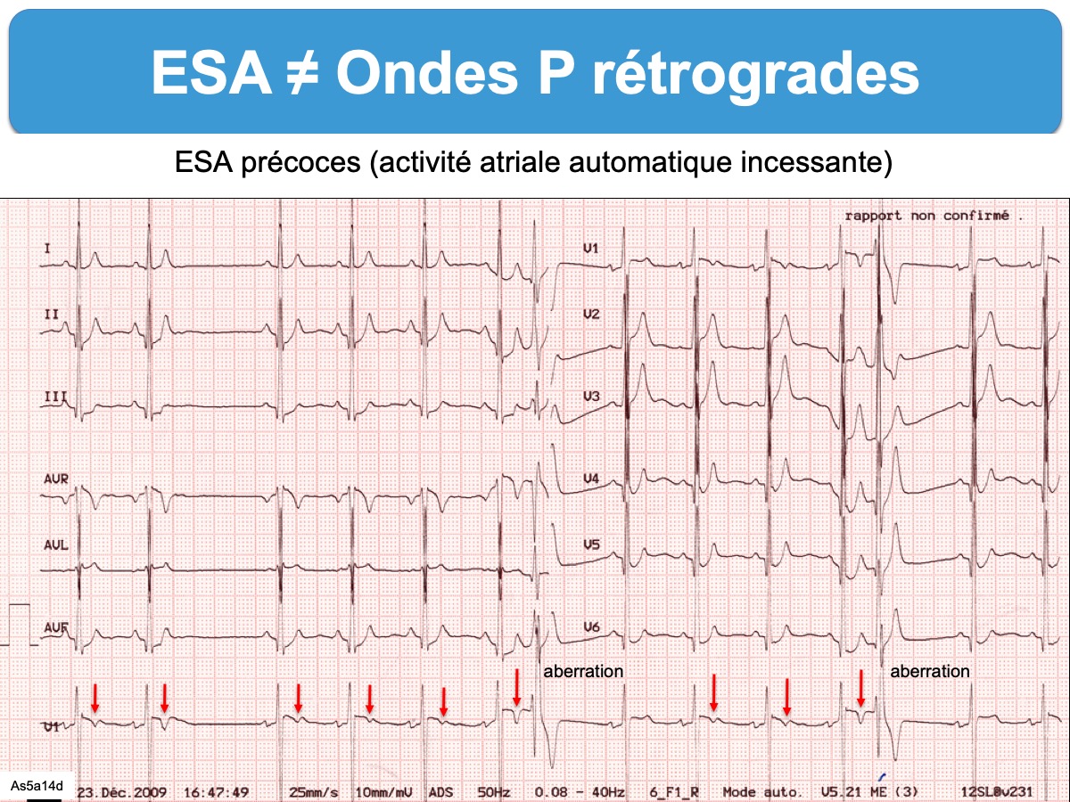 On peut observer une onde P rétrograde au cours de nombreux évènements rythmiques comme :