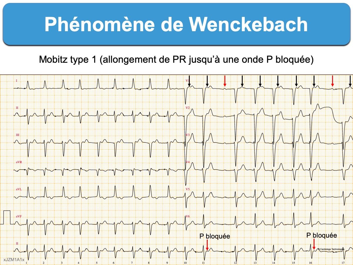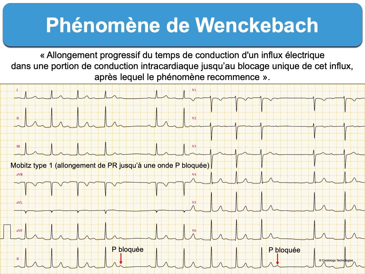 Allongement progressif du temps de conduction d’un influx électrique dans une portion de conduction intracardiaque jusqu’au blocage unique de cet influx, après lequel le phénomène recommence.