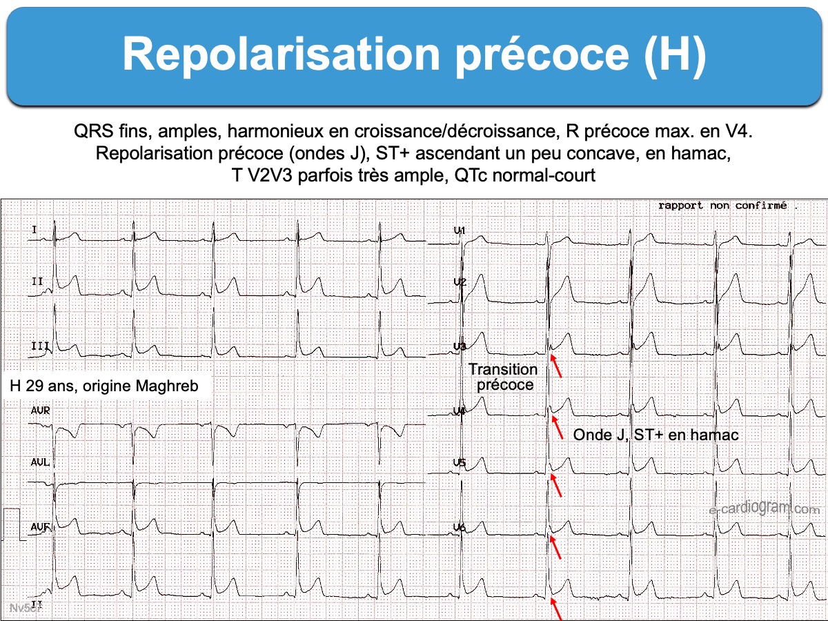 Voici les critères qui renforcent l’hypothèse d’une repolarisation précoce :