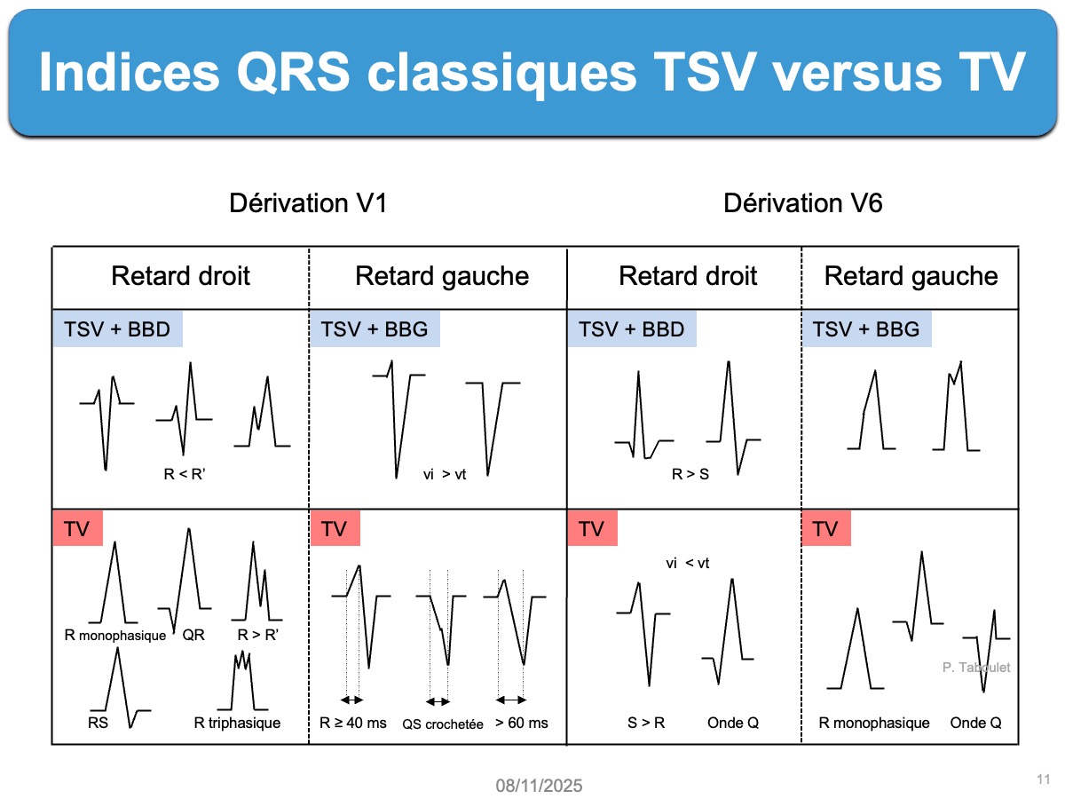 - rechercher des indices en faveur d’une TSV (cf. QRS aberrants versus QRS ectopiques).