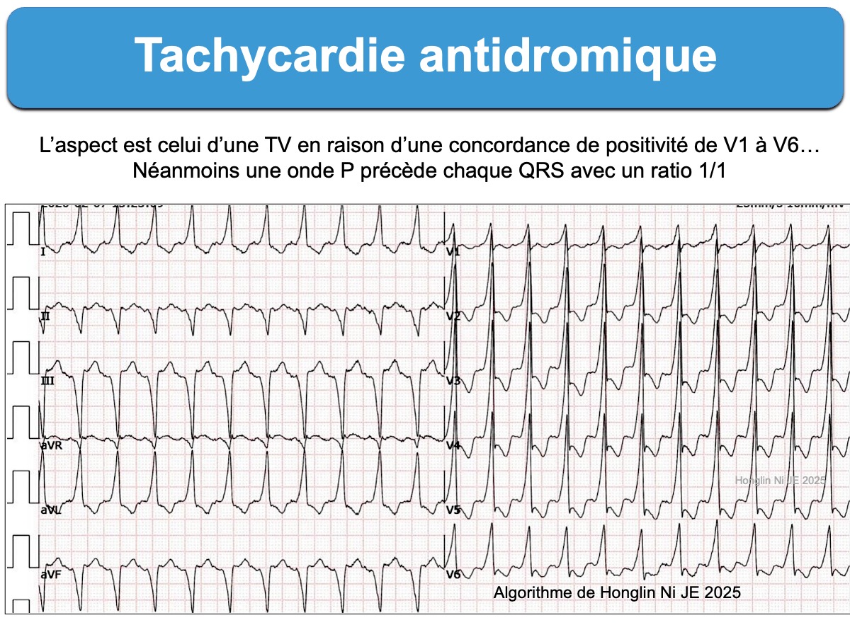 - Chez un patient (jeune) qui a une préexcitation ventriculaire ou atteint par le syndrome de Wolff Parkinson-White, il faut envisager une tachycardie antidromique.