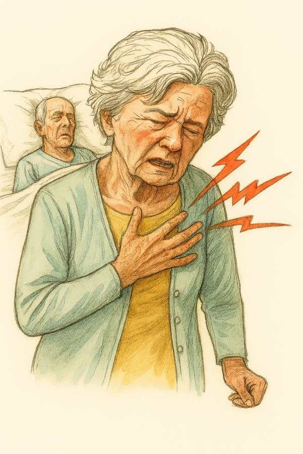 Cardiomyopathie aiguë catécholergique (ou « infarctus de stress à coronaires saines ») qui frappe en majorité la femme après 60 ans après un stress émotionnel intense (« syndrome du cœur brisé ») [1][1bis].