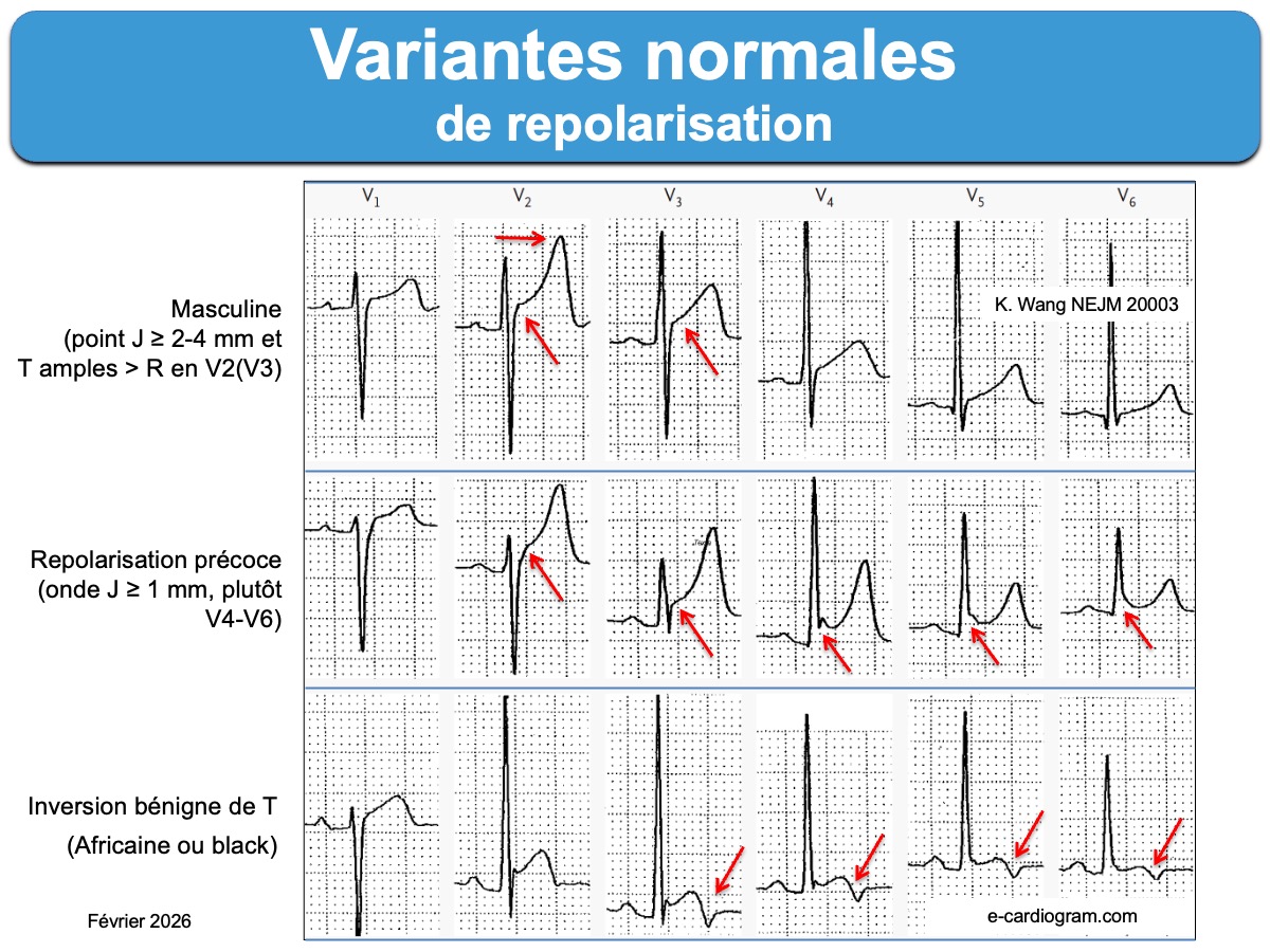 Les trois variantes ST+ de la normale se rencontrent en particulier chez l’homme jeune, d’origine africaine et/ou athlétique (Wang. N Engl J Med 2003 [1]).