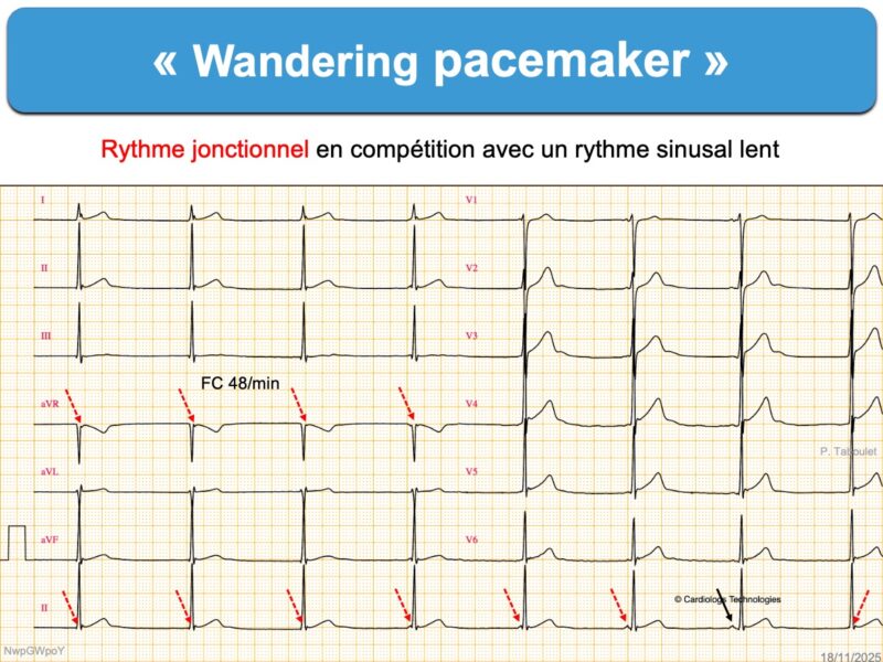 3 – À la limite de la définition, on peut observer un WPM dû à la compétition entre les pacemakers issus du nœud sinusal et celui du noeud AV.